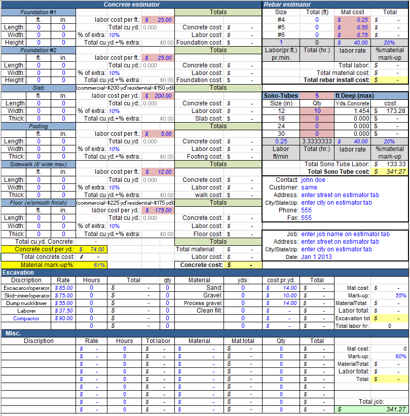 Concrete Estimate Excel Template Construction Office Online
